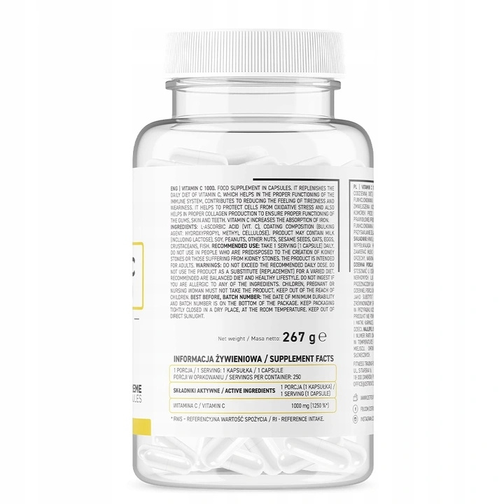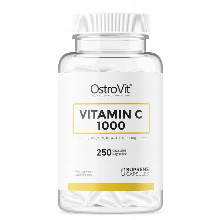 OstroVit Witamina C 1000 mg 250 kapsułek to naturalne wsparcie układu odpornościowego. Vitamin C marki OstroVit dostarcza 1000 mg kwasu askorbinowego do organizmu w każdej porcji. Wzmacnia barierę ochronną oraz wspomaga ją w walce z drobnoustrojami i wirusami, a dodatkowo poprawia stan tkanki łącznej i wspiera kondycję psychofizyczną.